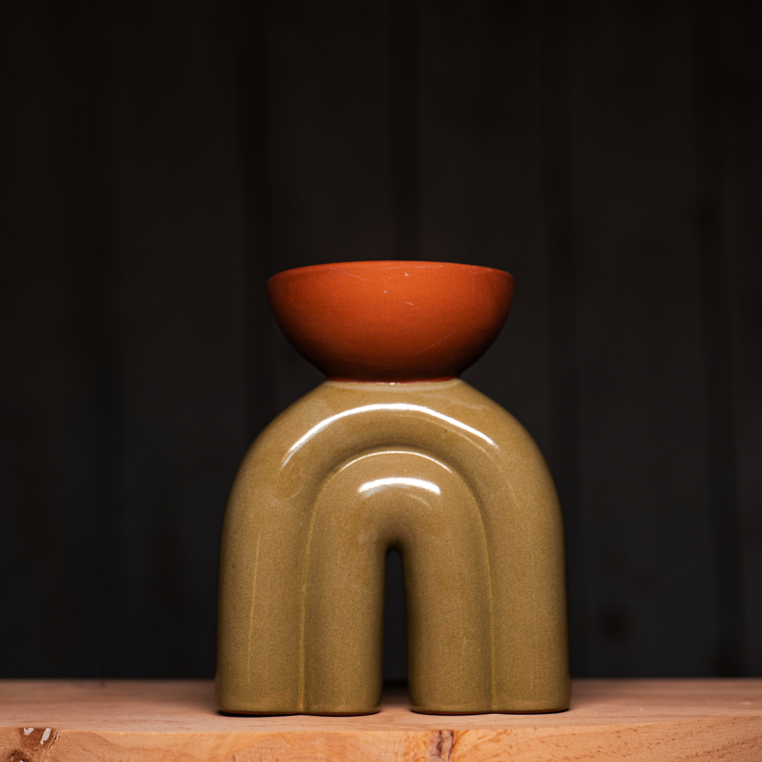 Pristatome mūsų dviejų atspalvių keraminę smilkalinę – modernų ir stilingą akcentą jūsų namų interjero kolekcijai. Ši dailiai pagaminta smilkalinė pasižymi elegantišku dviejų tonų dizainu ir glotniu glazūros paviršiumi, todėl puikiai tinka bet kuriam kambariui. Patvari keraminė konstrukcija užtikrina saugų ir efektyvų smilkalų deginimą, kartu suteikdama jūsų erdvei elegancijos.